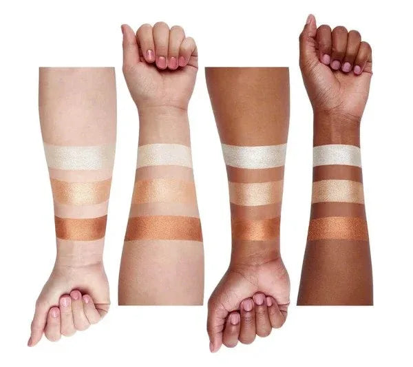 Everglow is a three-in-one highlight made up of frosty white, neutral shimmer and sunset copper created by NikkieTutorials