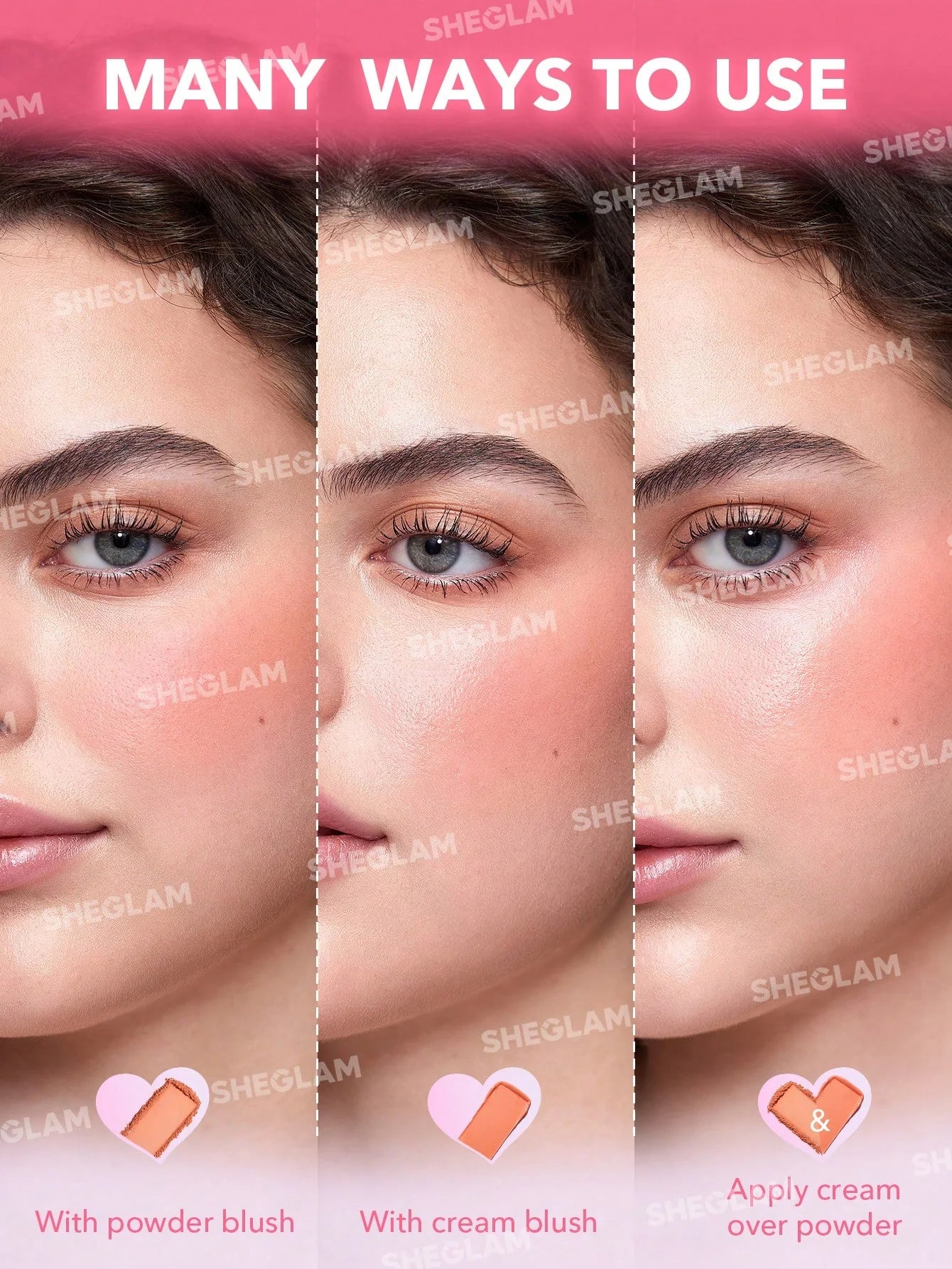 Details: Take your blush game to the next level with our SHEGLAM Cheek 2 Cheek Blush Duo, designed for high color rendering and stunning hues. This innovative long-lasting blush combines both cream and powder textures, making application a breeze! Whether you're aiming for a natural glow or a bold statement, this blush has got you covered.